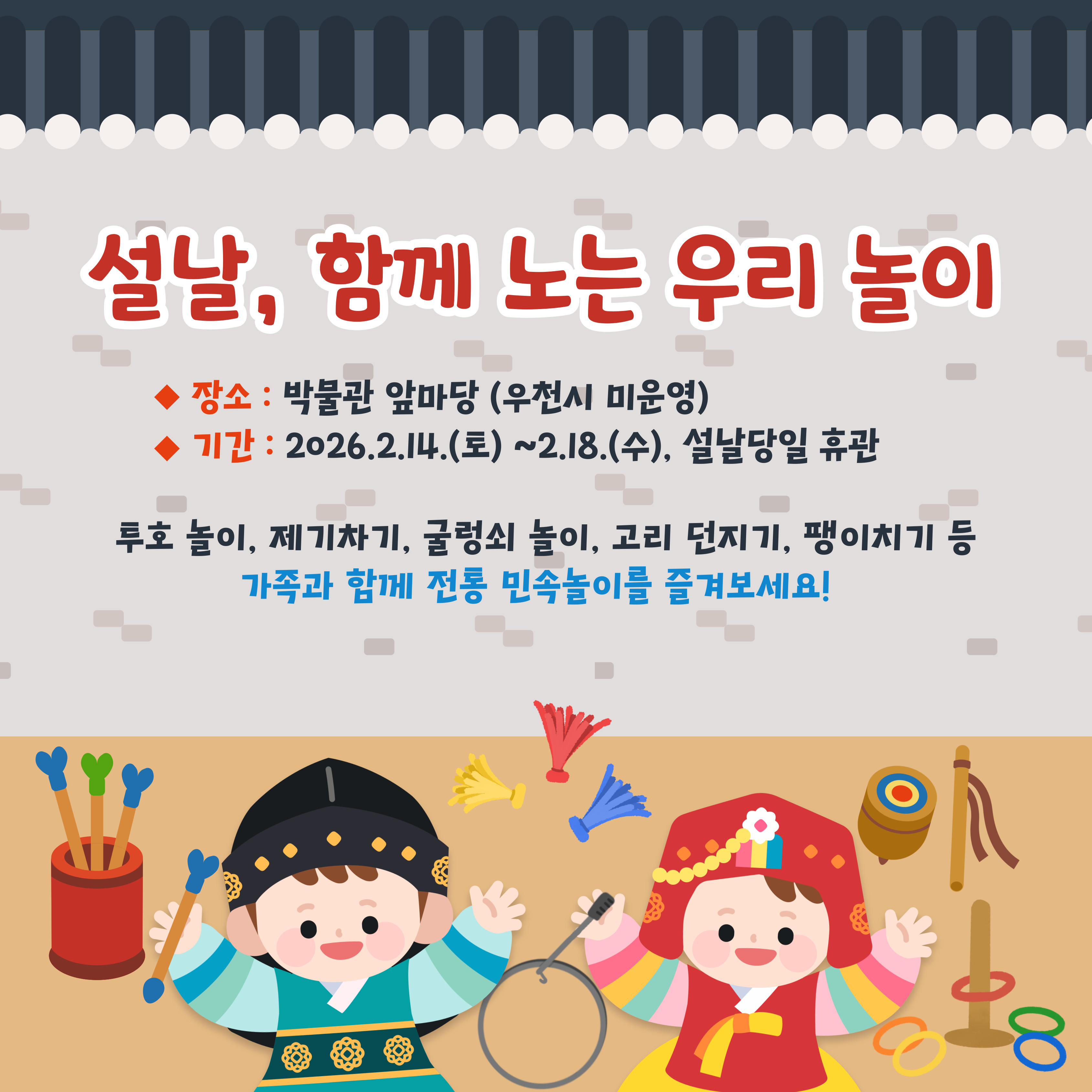2026년 설날을 맞아 국립나주박물관에서 전통 민속놀이 체험 행사를 운영합니다.